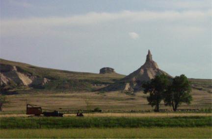 Near the region where they started following the North Platte River, Piercy wrote about large brilliantly colored grasshoppers that the children gleefully hunted (90). Baker wrote about difficult days crossing sand hills but seeing lizards, snakes, and grasshoppers (Holmes 263). Although Chimney Rock was on the south or Oregon Trail side of the North Platte, Baker wrote about it in her journal on August 9th. It was sufficiently interesting that she climbed a bluff to view it better. She called the scenery grand (Holmes 264). Baker should have also seen the Scotts Bluffs, the current site of Scotts Bluff National Monument, soon after Chimney Rock.
