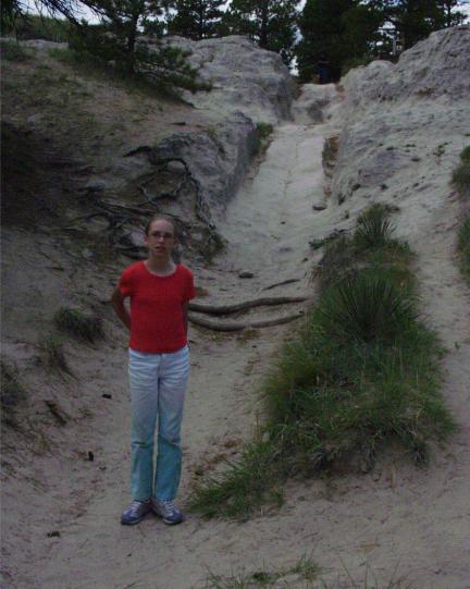 K. Shelley at Guernsey, WY wagon wheel ruts site.