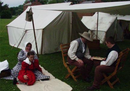 During the first two weeks, Baker�s company was immersed in nature. They learned to enjoy �red-root green as good as spinach�, they traversed deep ravines and swamps, survived violent afternoon thunderstorms, and had their first burial. The body was wrapped in a sheet and buried at the summit of a small hill where there were five other graves. The rough road inflicted a toll on the wagons, especially the critical wheels. Each company had skilled wheelwrights to make the repairs necessary along the way (Holmes 259-261).
