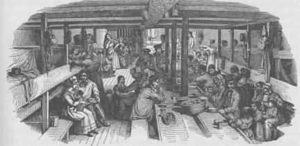 Steerage passengers on a typical packet ship (Sonne 59).