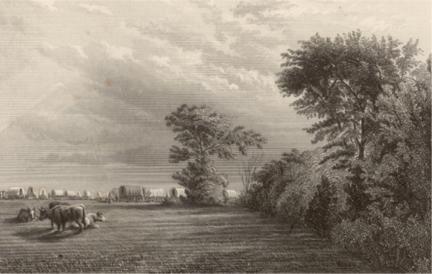 In 1851, Kanesville was the staging area for Mormon wagon trains. In December 1847, Brigham Young was sustained as president of the Church in the Kanesville Tabernacle. Winter Quarters, later called Florence Nebraska, on the west side of the Missouri River across from Kanesville was abandoned in 1848 (Stegner 84, 203) and Kanesville was made the new staging area. It flourished through 1851 with Mormon emigrants. Baker describes Kanesville on July 2nd, when the Shelleys were there, as �quite a pretty town, and the surrounding scenery very beautiful (Holmes 258).� The State Legislature changed the name of Kanesville to Council Bluffs in 1853 (Kimball 34).