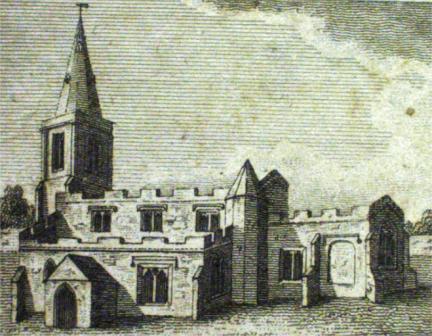 1839 print by Mathew Rugeley of the church in Eyeworth (Bedford Rec. Off.)