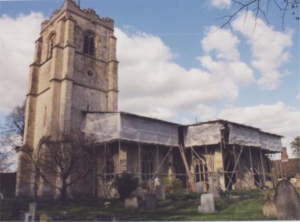 Meldreth is a village that borders the village of Whaddon on the east. The Holy Trinity Church is an ancient structure consisting of a nave, side aisles, chancel, and an embattled tower but was thoroughly repaired in 1841. There are 18th century Meldreth punishment stocks and a whipping post but we couldn�t locate them in 2001 when we visited Meldreth (History, Gazetteer, and Directory of Cambridgeshire, 1851, Page 310).