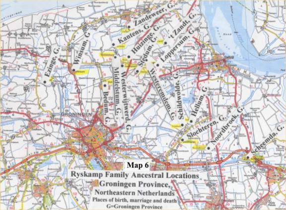 The Ryskamp Ancestral Locations are in the northern part of Groningen Province as shown on the following map. Click on a village to go to a description of it.